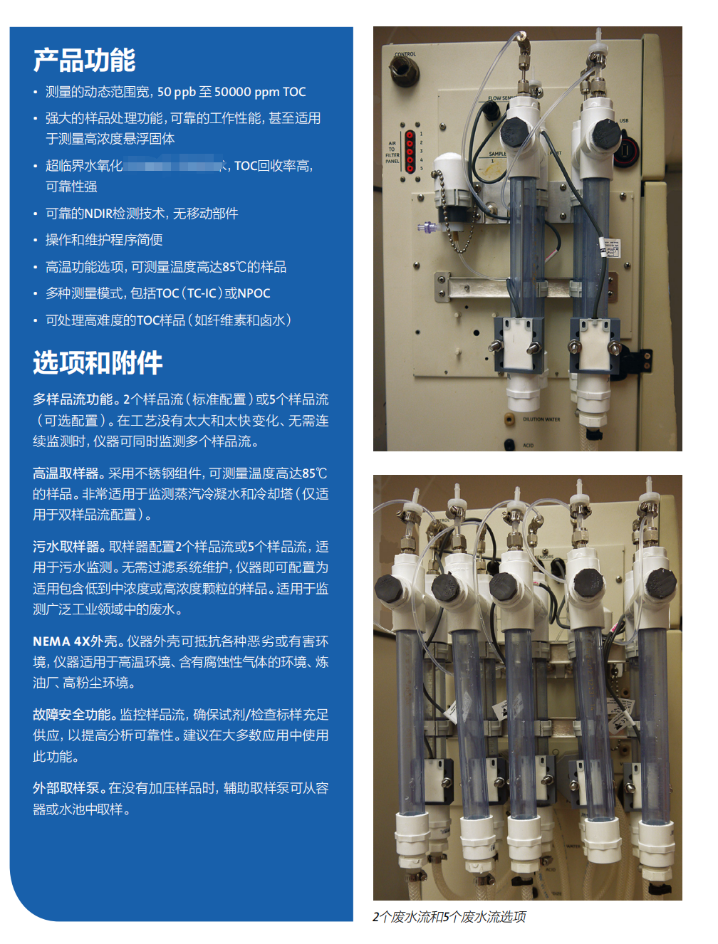 Sievers nnovox總有機(jī)(TOC)分析儀,用于連續(xù)測(cè)水樣中的有機(jī)碳濃度,適用于測(cè)各種排入就出的水流,從汽冷凝水到污水,測(cè)量濃度范圍極廣。所有型號(hào)的 Innova分析儀都具有強(qiáng)大的樣品處理力,采用業(yè)界領(lǐng)先的起臨界水氧化(SCwO, Supercritical Water Oxidation)技術(shù)其維護(hù)和操作程序簡(jiǎn)便,專(zhuān)為富有挑戰(zhàn)性的應(yīng)用而設(shè)計(jì),提供卓越的分析性與超長(zhǎng)的工作時(shí)間。
