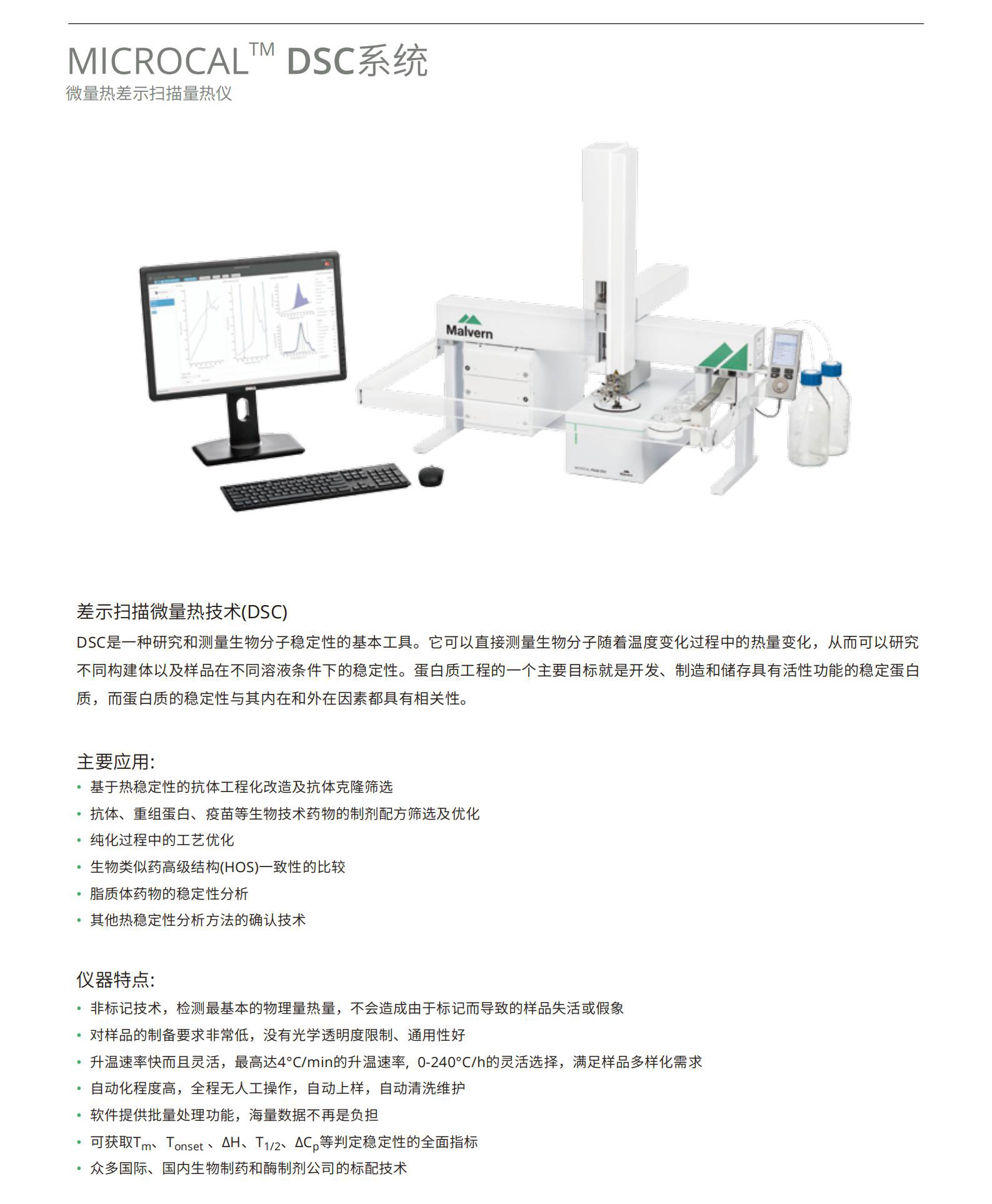 MicroCal PEAQ-DSC Automated 系統為自動化、集成式平臺,樣本量消耗低,可提供高通量、高靈敏度的蛋白質分析,提高生產力。 適合無人值守操作,所有樣本池的注入和清潔功能完全自動化。MicroCal PEAQ-DSC Automated 生成的數據在蛋白質工程、(預)制劑研發、流程研發、生產更改控制以及生物相似性和生物可比性研究中為生物制藥研發提供關鍵指導。 無人值守操作可實現 24 小時篩選,同時集成式軟件可精簡工作流程,促進非主觀性數據分析、性能確認并符合聯邦法案 21 章第 11 款 (21 CFR Part 11) 和 EU GMP 附錄 11 (Annex 11) 的法規要求,在生物制藥研究中提供高度完整數據并促進生產力。